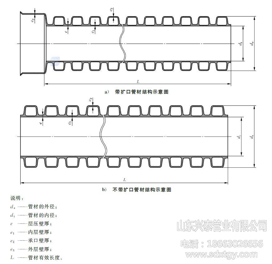 產(chǎn)品名稱:HDPE雙壁波紋管,聚乙烯雙壁波紋管 材料材質(zhì):PE/聚乙烯 執(zhí)行標(biāo)準(zhǔn):GB/T 19472.1 規(guī)格型號:DN/ID160-500mm(內(nèi)徑系列) 環(huán)剛度等級:SN4,SN8 外觀顏色:外觀內(nèi)壁均為黑色 產(chǎn)品長度:6米/支 連接方式:彈性密封圈 生產(chǎn)廠家:山東興泰管業(yè)有限公司 聯(lián)系電話:186 6302 6656 (高經(jīng)理) 適用溫度:長期使用溫度45℃以下的埋地排水、排污和通訊護套管用管材 產(chǎn)品介紹: HDPE雙壁波紋管,簡稱PE波紋管,80年代初在德國首先研制成功,是一種以聚乙烯PE為原材料,經(jīng)過擠出和特殊的成型工藝加工而成,內(nèi)壁光滑,外壁為封閉波紋型的一種新型輕質(zhì)管材,因采用了特殊的中空環(huán)形結(jié)構(gòu),具有優(yōu)異的環(huán)剛度和良好的強度與韌性。具有重量輕、耐高壓、韌性好、施工快、壽命長、摩擦系數(shù)小、連接方便可靠等特點。其優(yōu)異的管壁結(jié)構(gòu)設(shè)計,與其它結(jié)構(gòu)的管材相比,成本大大降低。雙壁波紋管已成為管道領(lǐng)域“以塑代鋼”的首選管材,它克服了混凝土管,鑄鐵管等安裝難度大、易銹蝕、水流阻力大、滋生細(xì)菌、壽命短的缺點。 PE雙壁波紋管是為了在節(jié)省原材料而不致使管材的環(huán)剛度下降的前提下,對管材截面進行優(yōu)化設(shè)計的一種內(nèi)壁光滑平整、外壁為梯形或弧形波紋狀、內(nèi)外壁波紋間為中空、采用擠出成型工藝制成的管材。因為其主要原材料為聚乙烯(PE),故簡稱為PE雙壁波紋管。 PE雙壁波紋管內(nèi)徑系列管材尺寸(單位:mm) 公稱內(nèi)徑 DN/ID 最小平均內(nèi)徑 dim,min 最小層壓壁厚 emin 最小內(nèi)層壁厚 e1,min 最小外層壁厚 e3,min 最小結(jié)合長度 Amin 200 195 1.5 1.1 0.9 54 300 294 2.0 1.7 1.0 64 400 392 2.5 2.3 1.8 85 500 490 3.0 3.0 2.1 96 PE雙壁波紋管的優(yōu)點 : 1、 產(chǎn)品結(jié)構(gòu)獨特,抗壓能力強,具有足夠安全可靠的環(huán)剛度; 2、 節(jié)約原材料,用同樣的原材料做同一外徑的管材時,波紋管比實壁管節(jié)省30%以上的原材料; 3、 重量輕,比重小于鑄鐵管和水泥管的50%; 4、 內(nèi)壁表面光滑,不易產(chǎn)生沉積,摩擦系數(shù)?。?/p> 5、 PE雙壁波紋管采用柔性密封圈連接,密封性能好,耐腐蝕,不結(jié)垢; 6、 具有良好的撓曲心梗,可適應(yīng)土壤的不均勻沉降; 7、 連接便捷、施工進度快,與傳統(tǒng)水泥管相比,采用PE波紋管可以提高3倍以上安裝進度,明顯降低施工費用,縮短施工周期; 8、 生產(chǎn)成本低,埋地使用可達(dá)50年以上,綜合經(jīng)濟性能優(yōu)越。 PE雙壁波紋管的物理力學(xué)性能 項目 要求 環(huán)剛度/(kN/m2) SN4 SN8 ≥4 ≥8 沖擊性能(TIR)/ % ≤10 環(huán)柔性 管材無破裂,兩壁無脫開,內(nèi)壁無反向彎曲 烘箱試驗 無分層,無開裂 密度/(kg/m3) ≤1180 氧化誘導(dǎo)時間(200℃)/min ≥20 蠕變比率 ≤4 PE雙壁波紋管的應(yīng)用領(lǐng)域 : 1、 市政工程,用于建筑物的地下排水管、排污管、輸水管、通風(fēng)管等; 2、 公寓、住宅小區(qū)、農(nóng)村地下埋設(shè)排水排污; 3、 電器電信工程,作為電力電纜、通訊光纜、通訊信號電纜的保護管; 4、 工業(yè),由于聚乙烯材料具有優(yōu)良的耐酸、堿及耐腐蝕能力,結(jié)構(gòu)壁管可用于化工、醫(yī)藥、環(huán)保等行業(yè)的給水和排水管道; 5、 農(nóng)業(yè)、園林工程,用于農(nóng)田、果園、茶園以及林帶排灌,可節(jié)水70%,節(jié)約用電13.9%,也可用于農(nóng)村灌溉; 6、 道路工程,可用作鐵路、高速公路、高爾夫球場、足球場等的滲、排水管; 7、 礦場,用作礦井的通風(fēng)、送風(fēng)管、排水管。 PE雙壁波紋管的連接: HDPE雙壁波紋管管道接頭應(yīng)采用彈性密封橡膠圈連接的承插式接口,橡膠圈接口應(yīng)遵守下列規(guī)定: 1、接口前,應(yīng)先檢查橡膠圈是否配套完好,確認(rèn)橡膠圈安放位置及插口的插入深度。 2、接口時,先將承口的內(nèi)壁清理干凈,并在承口內(nèi)壁及插口橡膠圈上涂潤滑劑,然后將承插口端面的中心軸線對齊。 3、接口方法應(yīng)按下述程序進行:DN400及其以下管道,先由一人用棉紗繩吊住被安裝管道的插口,另一人用長撬棒斜插入基礎(chǔ),并抵住該管端部中心位置的橫擋板,然后用力將該管緩緩插入待安裝HDPE雙壁波紋管管道的承口至預(yù)定位置;DN400以上管道可用兩臺手扳葫蘆將管節(jié)拉動就位。接口合攏時,管節(jié)兩側(cè)的手扳葫蘆應(yīng)同步拉動,使橡膠密封圈正確就位,不扭曲、不脫落。 PE雙壁波紋管貯存方法: HDPE雙壁波紋管應(yīng)貯存于常溫干燥庫中,不宜暴曬。 HDPE雙壁波紋管應(yīng)平放,堆碼高度不得超過4m。 HDPE雙壁波紋管不允許與有毒有害物質(zhì)混放,應(yīng)遠(yuǎn)離熱源,在存放處應(yīng)設(shè)置醒目的禁火標(biāo)志。 存放期自生產(chǎn)之日起,一般不得超過2年。